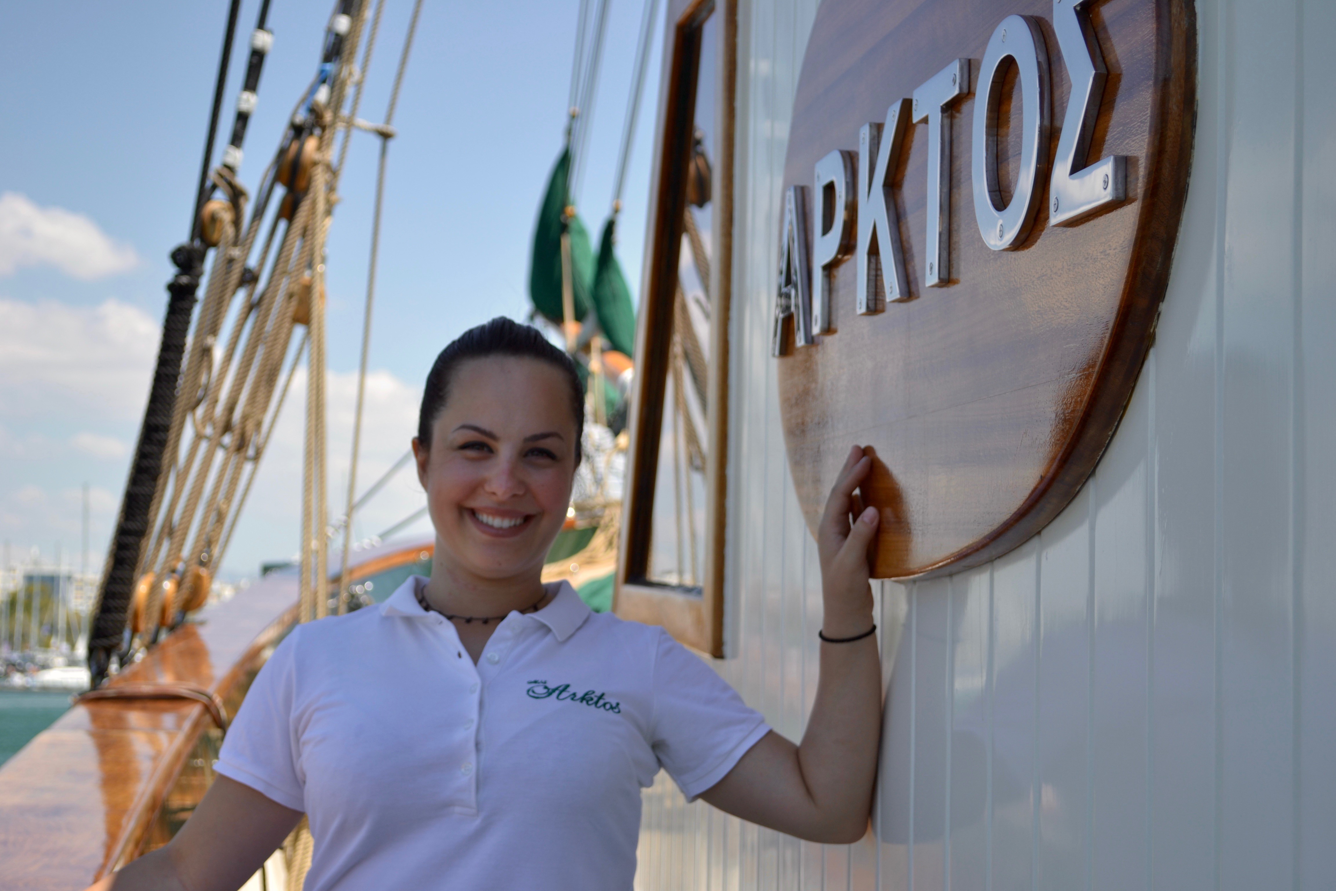 | Katerina joined the “Arktos” in June 2019. Her passion for hospitality has led her to start a career as a stewardess and waitress in various hotels on Greek Islands and now continues her hospitality passion onboard the “Arktos” as a stewardess.